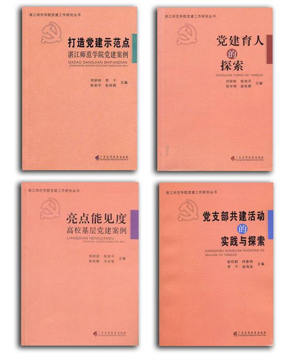 这种思想政治工作的定位,使我们坚持探索学生事务管理与人才培养的内在联系,包括党建工作、校园文化工作和社会实践工作,以推进党建、德育、文化、实践等工作为载体,努力寻找学校学生事务管理与培养人才的深层内在关系。我们从整体全局考虑,通过组织编书立说,出版三套丛书(共12册),凝练提升党建育人、文化育人、实践育人的“岭师效应”、德育创新与发展的“岭师模式”、校园文化建设的“岭师现象”。2011-2012年,由广东高等教育出版社出版“湛江师范学院党建工作研究丛书”——《党建育人的探索》、《亮点能见度——高校基层党建案例》、《打造党建示范点——湛江师范学院党建案例》、《党支部共建活动的实践与探索》。2013年4月,由我校和广东高等教育出版社共同主办的该丛书出版暨研讨会在广州召开,省教育研究院、省教育工委组织处等单位领导,以及来自广东省委党校、中山大学、华南理工大学、华南师范大学等高校的10多位专家学者出席了研讨会,《南方日报》、《羊城晚报》、《新快报》等多家媒体记者到现场进行了采访,在我们的实践中形成了“岭师模式” 、“岭师效应”。2011年,我校《大学文化育人的探索——湛江师范学院个案研究》一书由光明日报出版社正式出版发行。全书共29.51万字,从大学文化载体的凝练、大学文化特色的探寻、大学文化管理的实践、大学文化本质的追问等四部分反映了我校校园文化建设的过程,是我校大学文化育人工作的一个缩影。近年来,我校校园文化建设以“评选”为主导、以“建设”为主体、以“环境”为主调,通过树立校园文化典型,开展校园文化活动,建设校园文化景观,努力营造大学“文化场”,探索大学文化育人的路径。