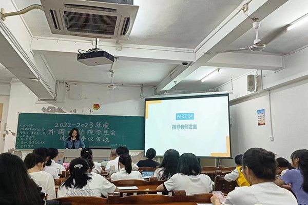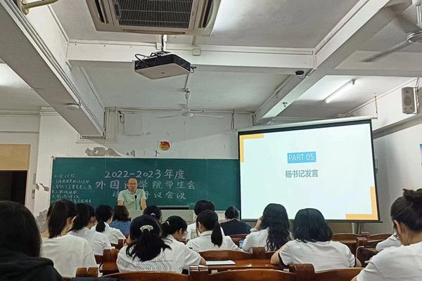 3月25日晚,外国语学院在教三504召开2022年度学生会述职评议会,旨在进一步贯彻落实习近平总书记关于青年工作的重要思想,进一步深化学生会组织改革,巩固改革成果。外国语学院党委副书记杨建伟、团委书记符琪琪、学生会指导老师黄子琦、校学生会体育部负责人张裴、院学生会全体工作人员以及各班班长出席本次会议。
