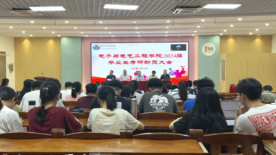 5月31日,电子与电气工程学院在第三教学楼311室召开2024届毕业生考研动员大会,旨在进一步促进学院学风建设,充分调动学生的考研积极性,提高考研录取率,推动毕业生实现更高质量就业。学院党委书记柯春明,学院党委副书记陈海东,副院长王树文、桑海涛出席会议,各教学系主任、教师代表,毕业班辅导员及2020级全体本科生参加了本次会议,会议由陈海东主持。