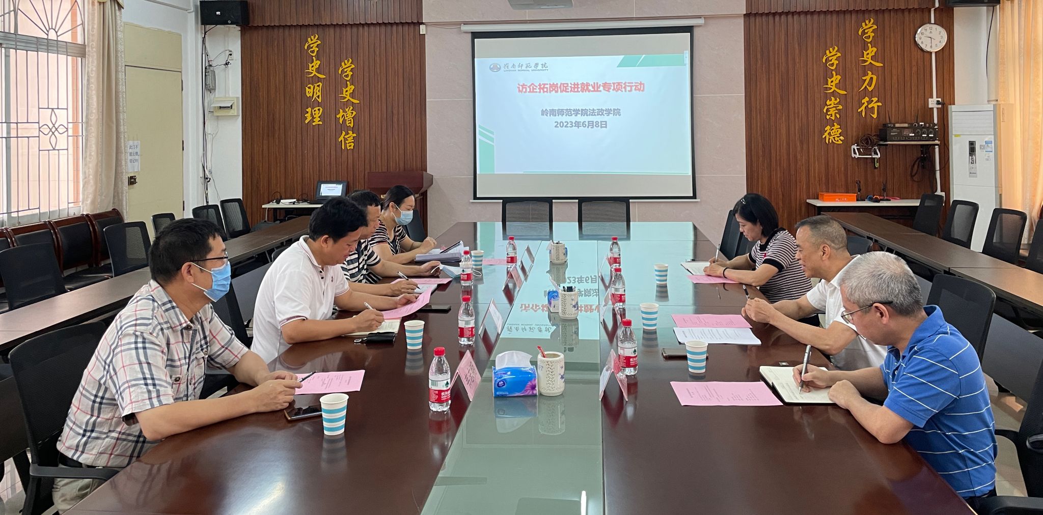 为深入推进访企拓岗促就业专项行动,全力拓宽毕业生就业渠道,促进毕业生更加充分更高质量就业,积极推进产教融合协同育人高质量发展。6月8日,法政学院在学院会议室与湛江市司法局党组成员、副局长丁永平、法援处主任陈明慧、主任科员庞东海一行进行合作洽谈。学院党委书记李德深、副院长娄伟、法学系主任韦志明、法学系林碧冰博士参加本次洽谈活动。