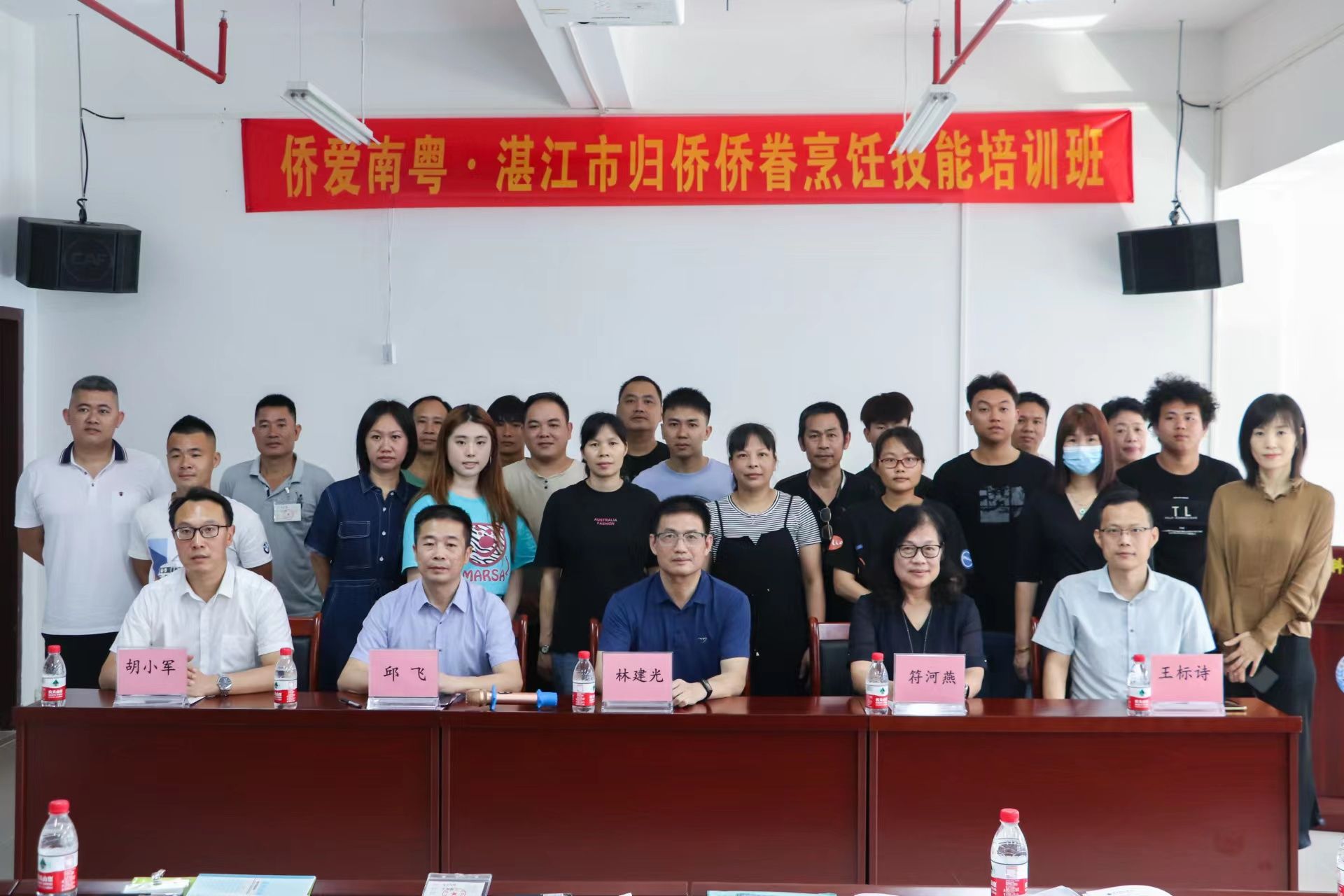 为深入落实党和国家的惠侨政策,提升我市归侨侨眷的烹饪技能,改善饮食质量,促进就业发展,由广东省归国华侨联合会主办,湛江市归国华侨联合会和岭南师范学院承办的“侨爱南粤·湛江市归侨侨眷烹饪技能培训班”于5月22日在岭南师范学院第五教学楼B栋318室举行开班仪式,广东省侨联基层建设部部长林建光、湛江市侨联符河燕主席、湛江市侨联基层建设部部长王芳,岭南师范学院食品科学与工程学院党委书记邱飞,副院长(主持全面行政工作)王标诗,党委副书记刘淑芬,副院长胡小军出席开班仪式,烹饪与营养教育系主任马景球、副主任熊昌定等参加了开班仪式。