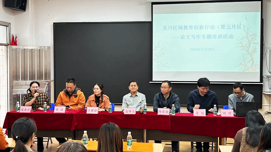 11月20日上午,吴川区域教育创新行动(第五片区)阶段性总结推进会暨论文写作专题培训在吴川市吴阳中心小学成功举行。此次活动由吴川市教师发展中心副主任凌连霞主持,教育创新行动(第五片区)行动小组全体成员、吴川市教师发展中心主任容伟文及第五片区试点校骨干教师参加。