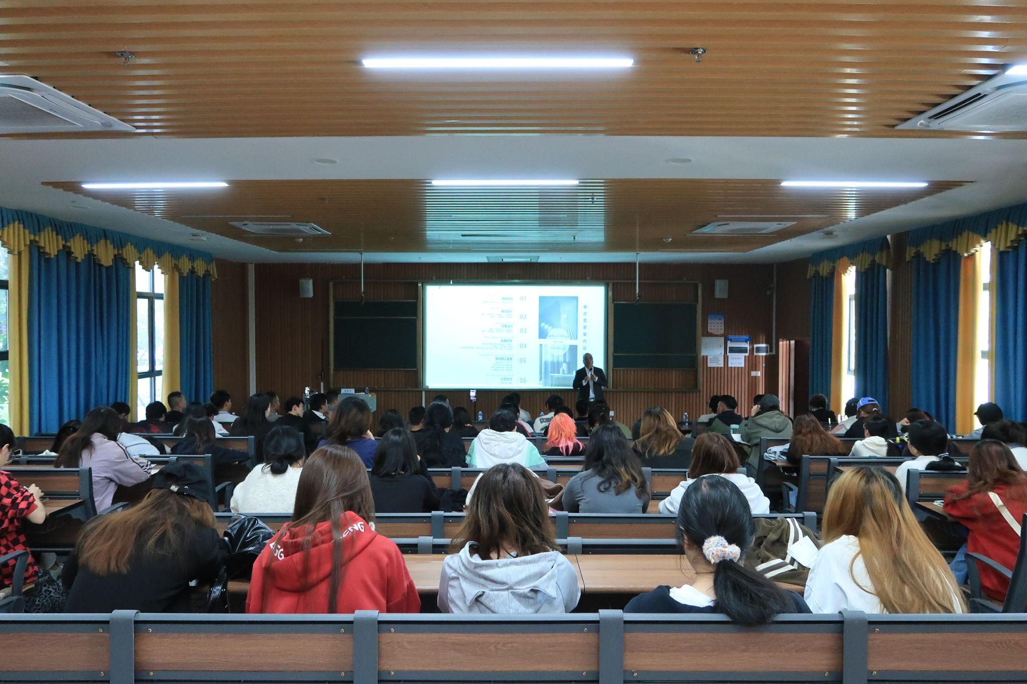 11月29日下午,美术与设计学院邀请了深圳市同心同盟设计创始人、国际注册高级室内设计师、湛江设计力量发起人之一、总会长陈伟文先生,在第五教学楼F103室为学院师生开展了主题为“设计之旅:20载设计生涯、创业历程与作品解读”的专题讲座。