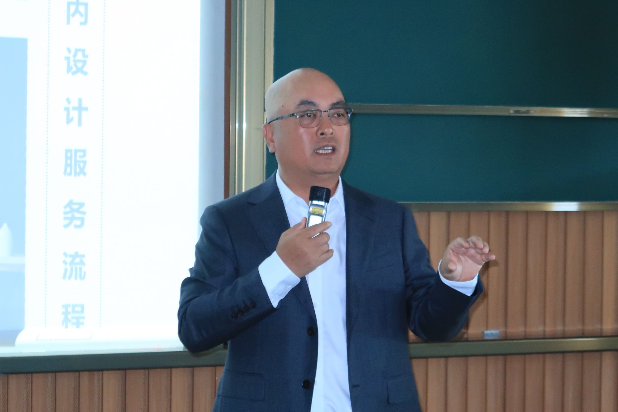 讲座中,陈伟文结合自己设计的酒店案例,深入剖析了设计理念在实际项目中的应用。他指出,在智能化与空间设计日益融合的当下,合理的空间布局与智能设备的融合至关重要,同时必须注重人性化设计,确保设计既能满足人们的实际需求,又能避免给生活带来不便。为此,他创新性地提出了“英式管家服务”体系,旨在通过设计全面改善使用者的生活习惯与质量,这一理念赢得了在场师生的阵阵掌声。