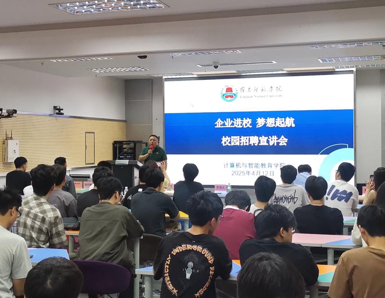 为进一步拓宽学生的就业渠道,促进毕业生实现高质量精准就业。4月12日,计算机与智能教育学院举行“企业进校 梦想起航”校园招聘宣讲会。学院邀请深圳信盈达科技有限公司、深圳市华睿信息技术有限公司、数字广东网络建设有限公司等企业在综B-802室举行招聘宣讲会,企业为毕业生们带来了丰富的就业岗位和职业发展机会。学院党委书记李海文、党委副书记陈明娟,毕业班辅导员以及21级、22级学生参加了本次招聘宣讲会。