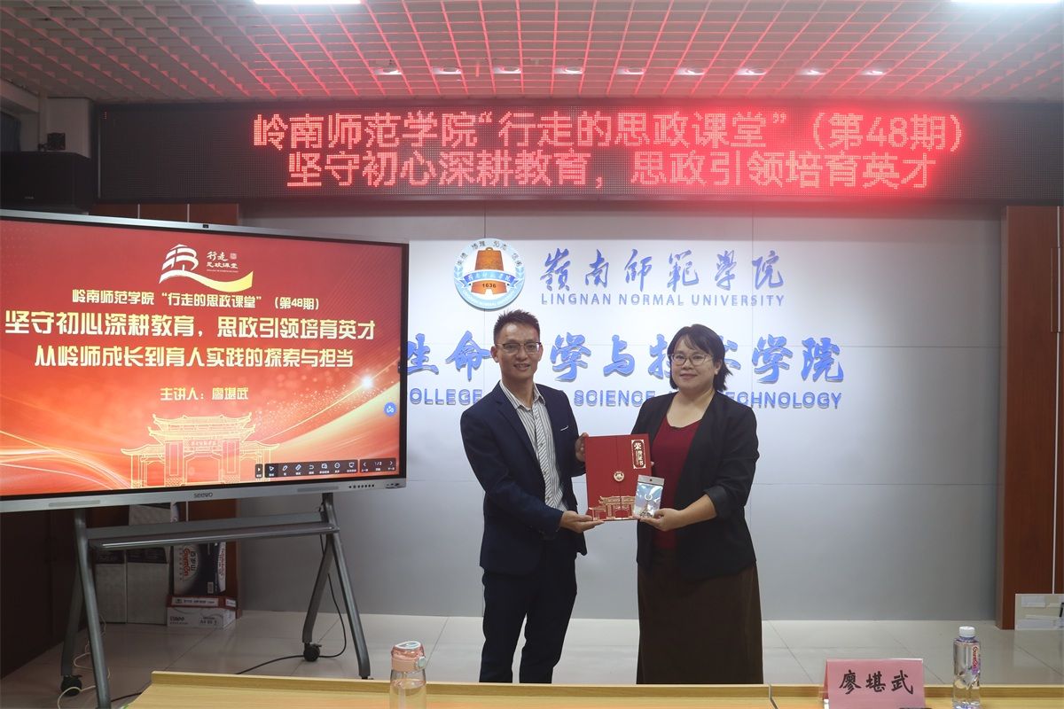 11月15日,由生科院举办的“行走的思政课堂”第四十八期报告会在燕雷楼E栋507如期举行。本次讲座特邀生科院2007级生物科学专业校友、雷州市第一中学高中生物高级教师廖堪武回母校,主讲“从岭师成长到育人实践的探寻与担当”。生科院党委副书记覃静君与80名学生齐聚一堂,共同聆听校友故事。