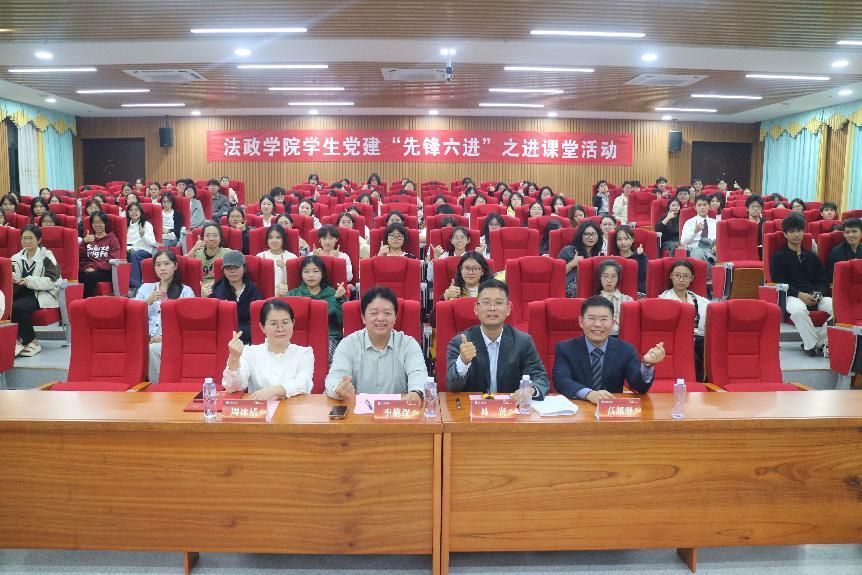 11月21日晚,法政学院在第五教学楼A102室承办学校第59、60期“行走的思政课堂”报告会,特邀2003级校友、北京德恒(东莞)律师事务所合伙人高超强,2005级校友、湛江市中级人民法院二级法官周冰清担任主讲人。学院领导班子、师生代表及法学系学生党支部成员参加活动,党委副书记易贤主持。