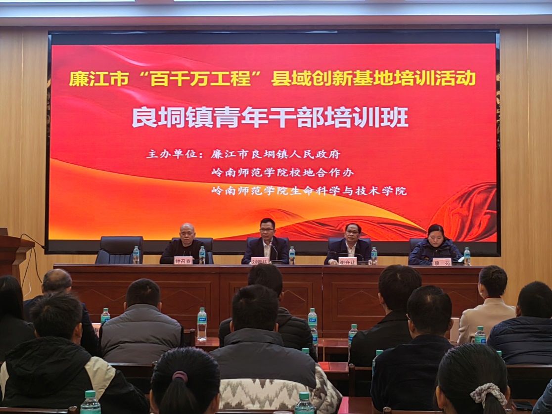 为深入推进省“双百行动”落地见效,强化校地协同育人实效,赋能基层青年干部成长成才,11月20日上午,由岭南师范学院校地合作办、生命科学与技术学院与良垌镇人民政府联合主办的良垌镇“青年干部”培训班在中塘乡村大课堂顺利开班。岭南师范学院校长办公室副主任、省“双百行动”驻廉江服务队队长钟召春出席会议,生命科学与技术学院组织专业师资团队全程授课,为全镇约150名青年干部送上“能力提升大餐”,良垌镇党委副书记蔡苑主持培训,省“双百行动”驻廉江服务队队长钟召春出席培训会议。