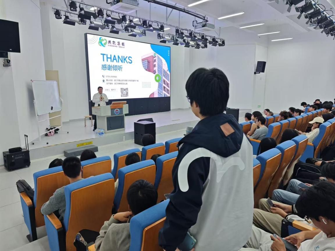 11月29日下午,一场主题为“赋能新时代,共赴新征程——电力产业发展与青年人才的使命”的《行走的思政课堂》报告会在湖光校区集贤楼301教室隆重举行。本次报告会特邀广东兴能集团董事长、市政协常委戴林生担任主讲嘉宾。电子与电气工程学院党委书记柯春明和副书记陈海东出席了本次会议,学院24级和25级学生参加学习,共同聆听了这场知识盛宴。