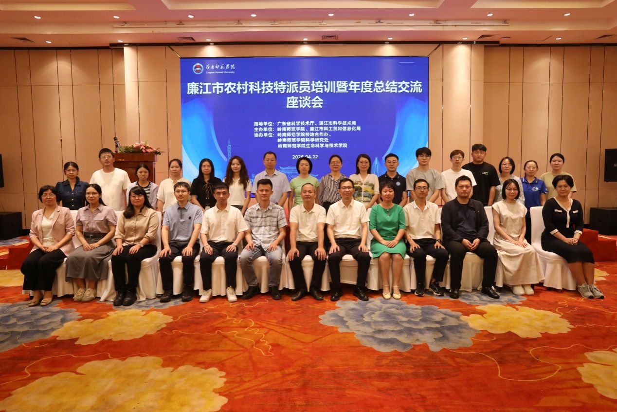 4月22日,廉江市农村科技特派员培训暨年度总结交流座谈会在廉江丽波酒店举行。会议由岭南师范学院科研处、校地合作办、生科院与廉江市科工贸和信息化局联合主办,聚焦“能力提升、成效总结、任务部署”三大重点,旨在以科技创新为廉江“百千万工程”注入新动能。作为廉江市县级农村科技特派员工作站牵头建设单位,岭南师范学院持续推动人才下沉、科技下乡,服务“三农”。