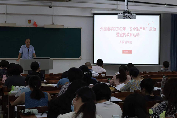 6月14日下午,外国语学院在教三405室举行“安全生产月”活动启动暨宣传教育会议,会议由外国语学院党支委书记陈永国主持,外国语学院教职工出席本次会议。
