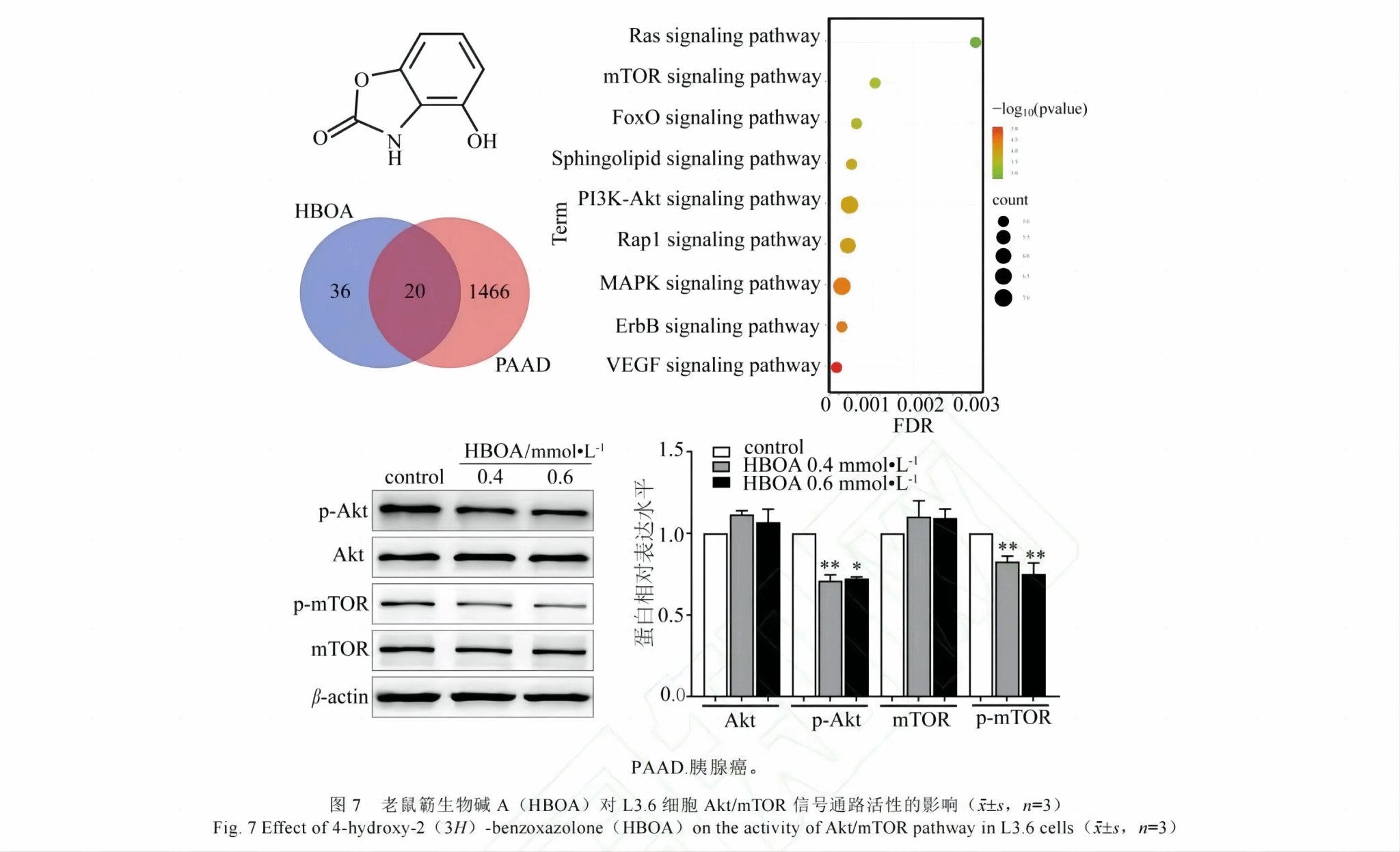 红树植物是海洋生态系统的重要组成部分,受高盐、高温、潮湿、强风等环境影响,使红树植物易产生一些结构新颖的生物活性物质,成为新药先导化合物的重要来源。红树植物老鼠簕入药历史悠久,老鼠簕生物碱A是苯并噁唑酮的4-位羟基化的产物,课题组发现老鼠簕生物碱A可以抑制胰腺癌细胞增殖,诱导细胞凋亡,通过调控AKT/mTOR信号通路发挥功能,该课题由岭南师范学院红树林研究院开放课题资助,研究成果将为红树植物的功能研究和开发利用奠定基础。