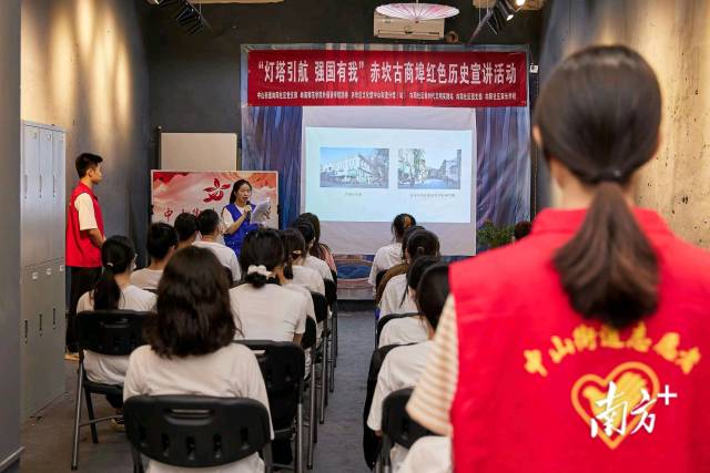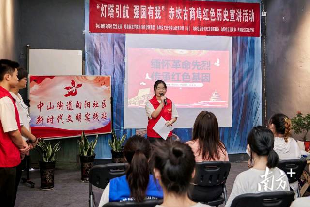 为深入推进党史学习教育,培养青少年家国情怀,激发青少年爱国热情,凝聚起奋进新征程的强大精神力量,2023年5月20日,中山街道向阳社区党支部、岭南师范学院外国语学院团委、赤坎区文化馆中山街道分馆(站)、向阳社区新时代文明实践站、向阳社区团支部等单位在赤坎古商埠6号码头举办“灯塔引航 强国有我”红色历史宣讲活动。活动邀请岭南师范学院“大学生培根宣讲团”作宣讲,40名来自辖区内的青少年参加活动。