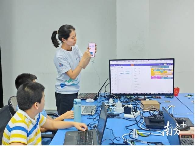 近日,岭南师范学院“匠心科创”突击队来到湛江市赤坎区,促进人工智能素养教育科普“进社区、进课堂”,探索科技与社会的融合之路。