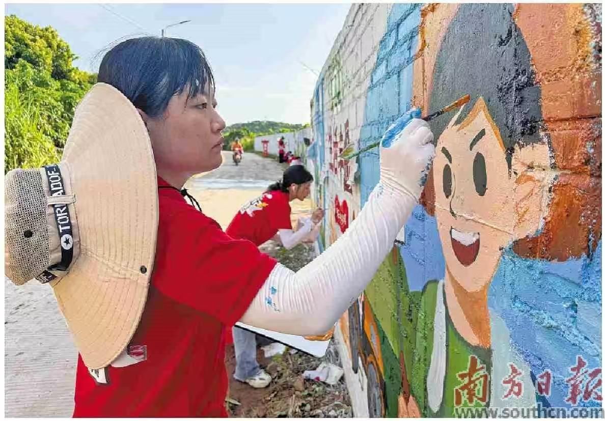 今年暑假,在为期10天左右的实践活动中,岭南师院和广外艺学子分工有序,充分发挥自身艺术专业的优势,执起画笔,在廉江乡村的墙壁上绘图、上色、修饰,“扮靓”村民居住环境,为乡村再添美景。