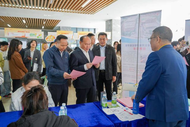 学校高度重视毕业生就业工作。党委书记阳爱民、副校长唐宇来到活动现场指导。在用人单位展位前,阳爱民与乳源瑶族自治县教育局及人社局、东莞市东方明珠学校、深圳市思考乐文化教育科技发展有限公司、温氏食品集团股份有限公司、云浮市伊顿实验学校、正大天晴药业集团股份有限公司等招聘负责人深入交流,详细了解岗位需求、招聘计划、薪资待遇及专业适配等情况,积极推介学校毕业生,并向各单位长期以来对学校就业工作的大力支持与信任致以诚挚感谢。