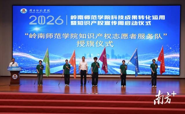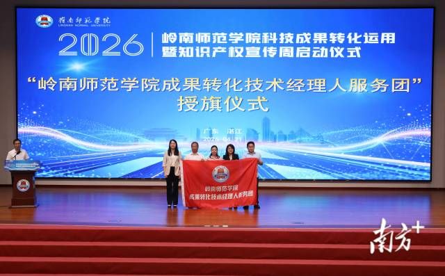 活动现场,湛江市科技局和湛江市市场监管局分别为学校“成果转化技术经理人服务团”和“知识产权志愿者服务队”授旗。这两支队伍将成为岭师科技成果转化和知识产权服务的重要力量。