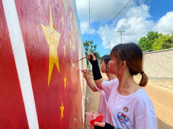而在广东最南端的徐闻角尾村,来自美术与设计学院的12名“益夏”社会实践队的队员们,正在把村里的“土墙”绘成百米党史学习的“红墙”。他们用自己的专业实践,把党史学习教育与艺术创作结合起来,为美丽乡村建设添光增彩。
