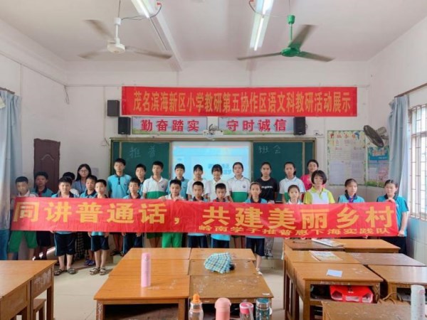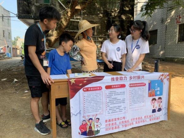 为深入贯彻习近平总书记关于教育的重要论述精神,响应国家“推普助力乡村振兴”的号召,在岭南师范学院教务处、校团委、语委办以及数计学院领导老师的指导下,岭南学子“推普惠下海实践队”于今年暑期前往广东省茂名市滨海新区电城镇爵山下海村,开展“同讲普通话,共建美丽乡村”推普宣传活动。