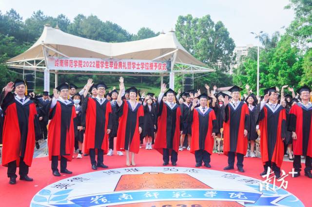 麦穗成熟时,正是拨穗正冠时。6月16日,岭南师范学院2022届学生毕业典礼暨学位授予仪式在雷阳广场举行,6000多名毕业生整齐列队,身着学士学位服接受校领导、学位评定委员会全体成员的拨穗。