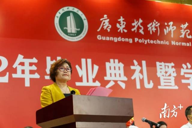 青春不迷茫,只要敢攀登。广东技术师范大学校长戴青云勉励毕业生,要喝得下“三种水”——别人泼的冷水、自己流的汗水、不被别人理解的泪水。“要做想干事、能干事、干成事的职场新人。”她希望学生们能在奋斗中释放青春激情、在历练中追求自我突破,不负韶华、只争朝夕,向阳而生,逆光而行,做自己人生的攀登者。