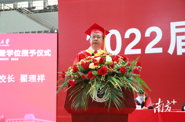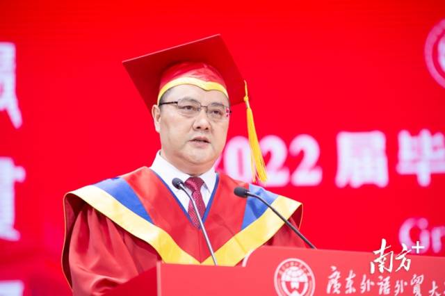 广东外语外贸大学党委书记、校长石佑启勉励毕业生,让个人选择与时代脉搏同频共振,拥抱时代之变,坚守敢于筑梦、不懈奋斗的赤子初心,坚定勇于追梦、迎难而上的强大信心,坚定勤于圆梦、勇毅前行的持久恒心。“希望毕业生们用初心筑梦、用信心追梦、用恒心圆梦,在不懈奋斗中增长才干,在青春赛道上奋勇争先。”
