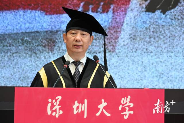 中国科学院院士、今年2月刚刚履新深圳大学校长的毛军发首次出席深大毕业典礼并以《时代呼唤血性》为主题致辞,以深圳大发展史、深大校友故事、民族英雄和气节之士为例,与毕业生分享自己对“血性”的感悟。