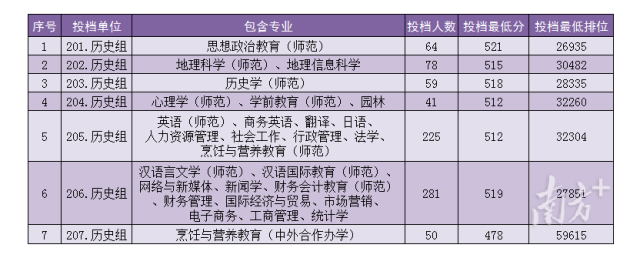 公费定向师范生依然“火爆”。今年,岭南师范学院270人计划数全部科类、专业一次性满档。其中,物理类最低分521分,最低排位比去年提高近2万名;历史类最低分502分,最低排位较去年提高近7000名。