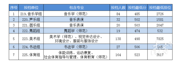 艺体类投档情况。