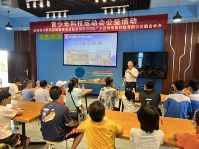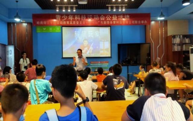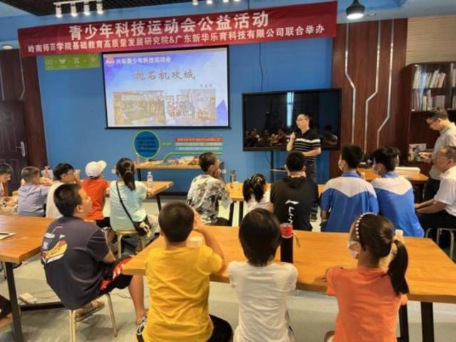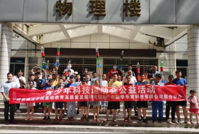 7月23日-24日,由岭南师范学院基础教育高质量发展研究院和广东新华乐育科技有限公司(下称“新华乐育”)联合举办的第一届青少年科技运动会公益活动在岭南师范学院物理学院成功启动,湛江市18所学校的30余名中小学生齐聚一堂,体验湛江市青少年科技运动会的抛石机攻城、多级水火箭等项目,在愉快的学习中体会科学的魅力,锻炼动手制作能力,培养竞技意识。