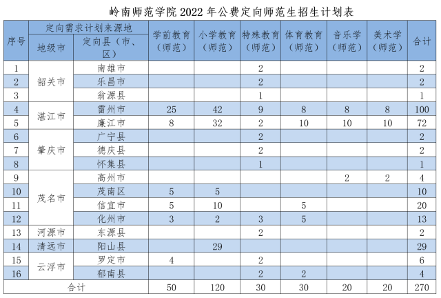 标题链接:270名!岭南师范学院2022年公费定向师范生招生计划公布