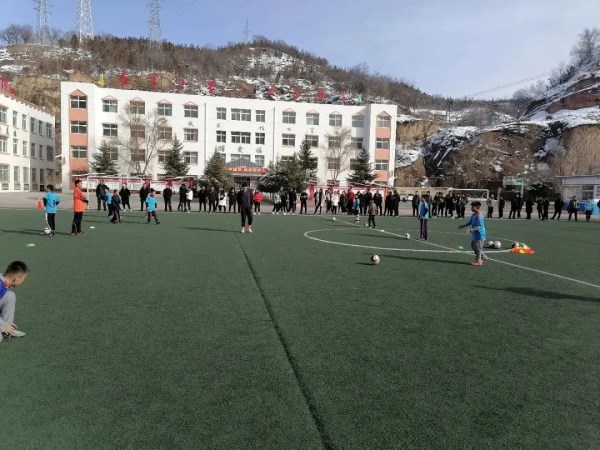 冬日里的志丹县白天气温在零度左右,山上都被白雪覆盖。在对刘志丹红军小学学生进行培训前,戚进华和梁建东老师策划了两节足球课,他们想通过游戏的方式使学生在玩中学,学中玩。在技术练习环节,两位教练把足球运控球比喻成学开车,学生在不停地往返运球中,需要抬头观察、运球变向才能避免相撞,并在练习过程中慢慢学会控制球。这种新颖的教学方式,很快让孩子们全情投入到训练中。