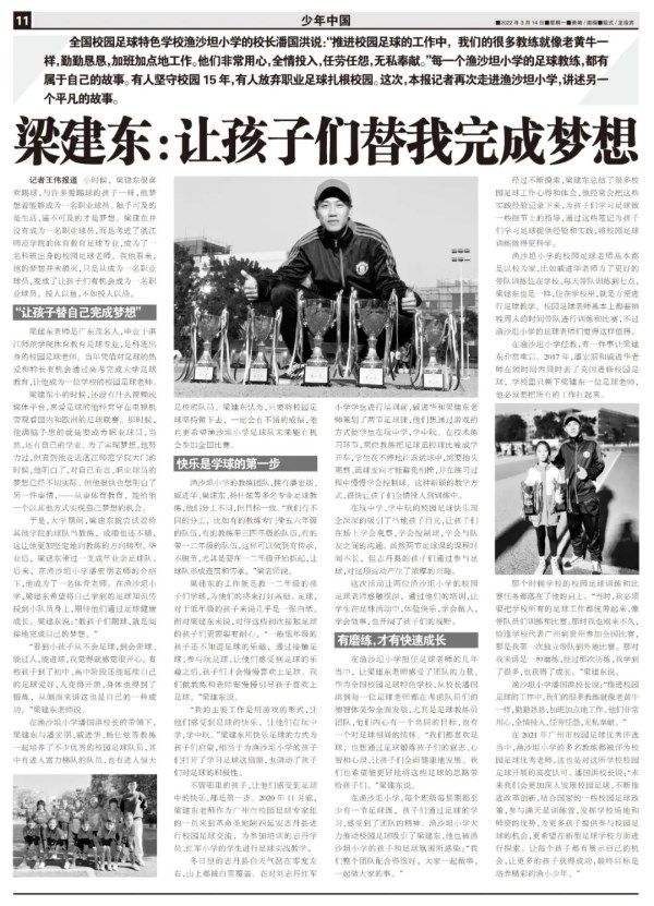 标题链接:少年中国|“看到孩子们学会带球、过人,就像延续了自己的梦想”