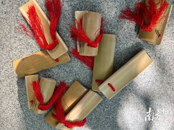 一大一小两块竹片用绳子串结起来,小板中间加入铜板,一副快板就这样应运而生。然而,要让这个“小玩意”演奏出各种花样的打击效果,背后却少不了辛勤的汗水。