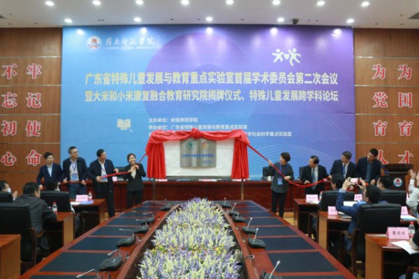11月21日,广东省特殊儿童发展与教育重点实验室和深圳市复米健康科技有限公司合作共建的“大米和小米康复融合教育研究院”在岭南师范学院正式揭牌。