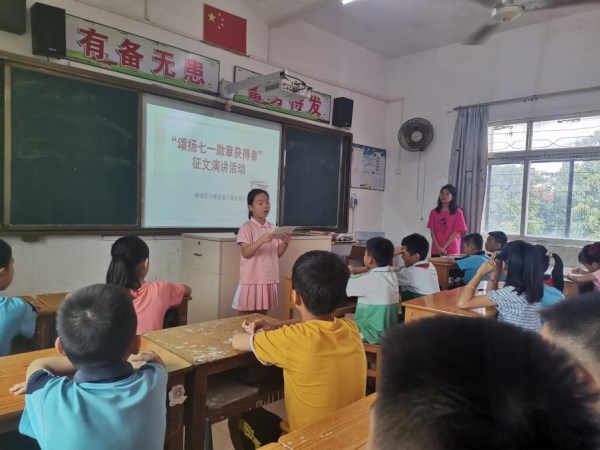 为庆祝建党百年,传承红色精神,实践队在下海小学开展党史学习教育、党的故事分享会、“颂扬七一勋章获得者”征文演讲等活动。队员带领孩子们把对党、对祖国的热爱融入语言文字中,展示中国少年的风采,感受中国共产党的伟大。