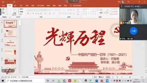 2021年起,除提供学业和心理辅导外,韩山师范学院结合建党一百周年在线上为帮扶对象开展“党史微课堂”,将线上成果与线下“两帮两促”集中活动月相结合,开展暑期社会实践“党史学习教育”主题活动。截止2021年7月,学校对接的四个地市云支教活动全面铺开,已经对揭阳、潮州、汕头三地的支教对象进行实地走访,深入学生家庭。