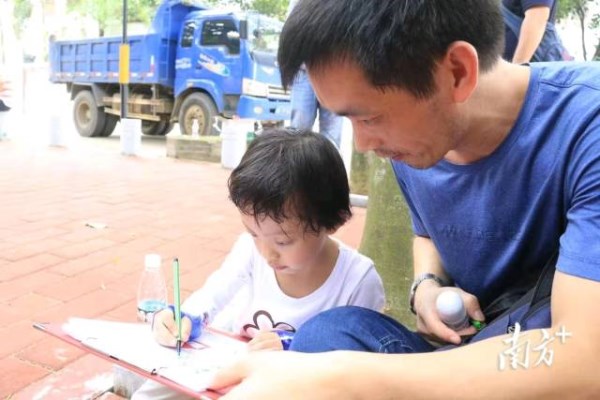 “我也想学这样的画”“我长大了要当一个画家”清新秀丽、雅俗共赏的中国山水、花鸟画让乡村的儿童开了眼界,他们围着学员表达好奇争相提问。来自广州市信息工程职业学校的林纷老师被小朋友围着脱不开身,她现场为小朋友上了一堂生动的美术欣赏课。而在竹林的另一边,小朋友拉着汕头市朝南区职业技术教育中心的楚钊老师在现场示范写生……