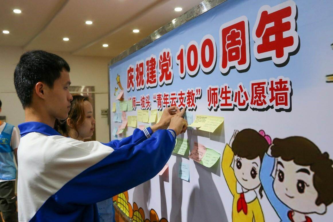 大学生志愿者带领乡村青少年为党的生日送祝福