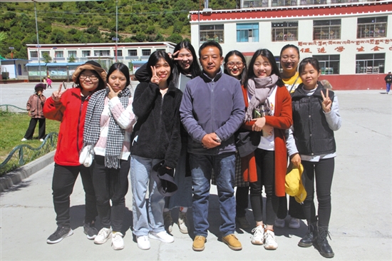 8月17日,从来没有来过西藏的广东岭南师范学院8名大四女学生,被李健元从工布江达县城接到了学校,第二天跟师生开展交流活动,第三天就走上了讲台,讲的课几乎包含了所有课程。