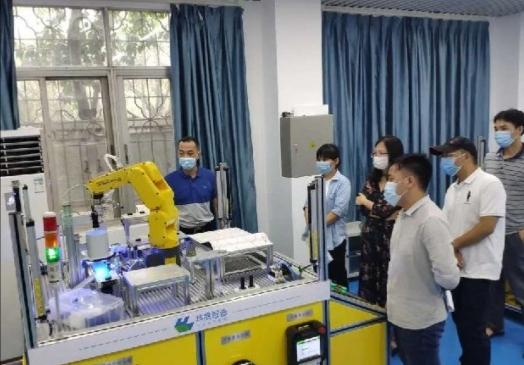 图为岭南师范学院新招专业机器人示教编程实验平台。