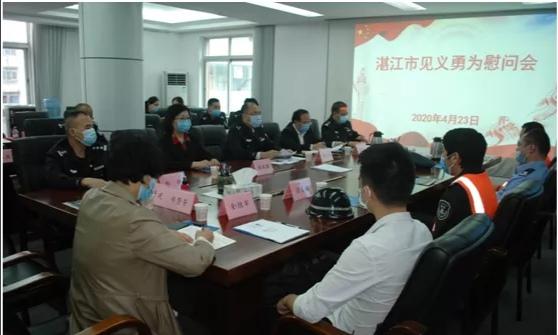 广州日报4月25日讯:4月23日,湛江市公安局党委委员、副局长骆宏昭带领市见义勇为基金会理事长韩桂君、赤坎区副区长、公安局局长郑调和市公安局治安巡警支队支队长李亚起等到岭南师范学院慰问表彰该学院校卫大队见义勇为队员钟三军、全胜军、黄祯昌、李向平和梁基铭等5人,以此更好地弘扬社会正气,传播社会正能量,激励更多民众积极同违法犯罪行为和灾害事故做斗争,维护社会和谐稳定。