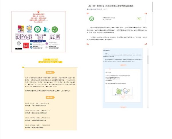 暨南大学依托线上平台积极开展疫情防控法治宣传教育。组建暨南大学疫情防控科普青年志愿服务队,是全国最早针对新型冠状病毒进行科普的学生志愿团队之一,科普疫情防控知识和解答疫情相关问题。通过暨南大学易班平台结合学校开展的法治安全教育主题活动,在课群增设转播广州互联网法院“云课堂”在线普法活动课程,课群活跃度超4万。通过暨南大学学生学习与发展微信公众号平台,推送广东省监察委员会特约监察员、马克思主义学院王高贺副教授的《用法治思维打赢疫情防控阻击战》文章,从立法、执法、司法、守法各个环节入手,分析依法科学防控的重要性。
