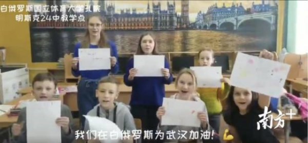 岭南师院在白俄罗斯开办的孔子学院的师生在视频中用中文表示了问候和祝福:“我们在白俄罗斯为中国加油!我们一起等待春暖花开,中国是我们的第二家乡,我们在白俄罗斯为你祈福,我们支持你与病毒做抗争,祝中国早日战胜病毒!”