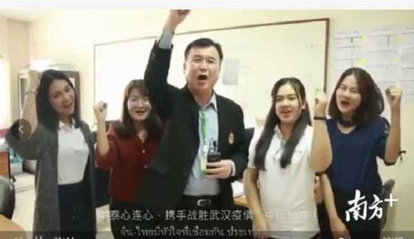 “中泰心连心,携手战疫情。”泰国格乐大学校长Krasae Chanawongse在信中表示,泰中两国,地缘相近,血缘相亲,他们也感同身受!泰国格乐大学的师生也拍摄了祝福的视频:“我们与中国同在,让我们一起渡过难关,中国加油,武汉加油,一切都会变好的。”