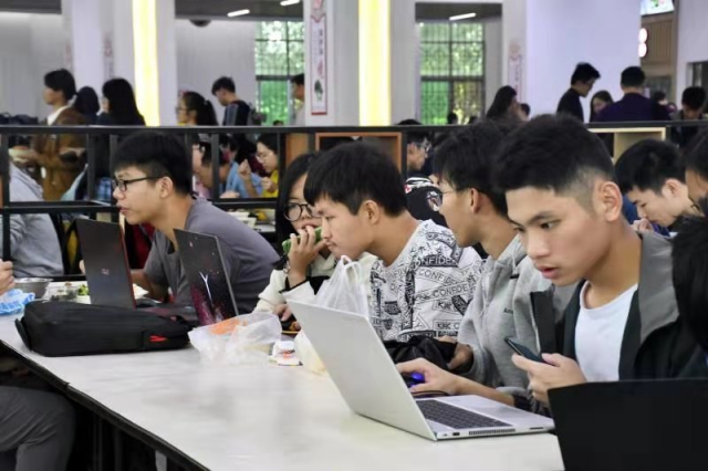 除了一日三餐的时间,偌大的高校食堂还能派上别的用处吗?11月28日晚上8时,笔者走进岭南师范学院学生食堂泽园一楼,只见灯火通明,就像走进了一间舒适的自习室。