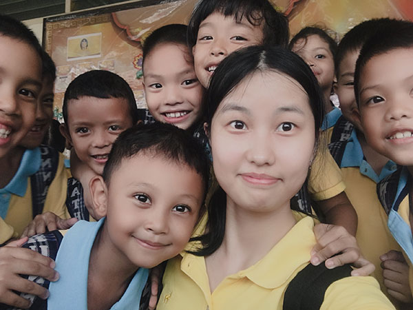 马冰与泰国学生在一起。