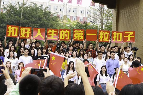 岭师学子举起“扣好人生的第一颗扣子”一起歌唱