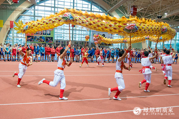 在“国际武术邀请赛”上表演舞龙。