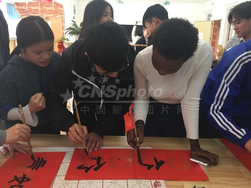 包饺子、写春联、挂灯笼……连日来,寒假“留守”在广东岭南师范学院的22名异国学子,早早地便感受到了中国传统节日—春节的热闹和魅力。